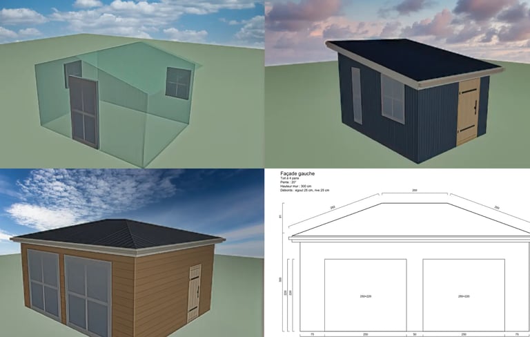 Paramétrez votre abri en 3D en quelques secondes, exportez votre plan coté et valider les proportions avant de passer à la réalisation.